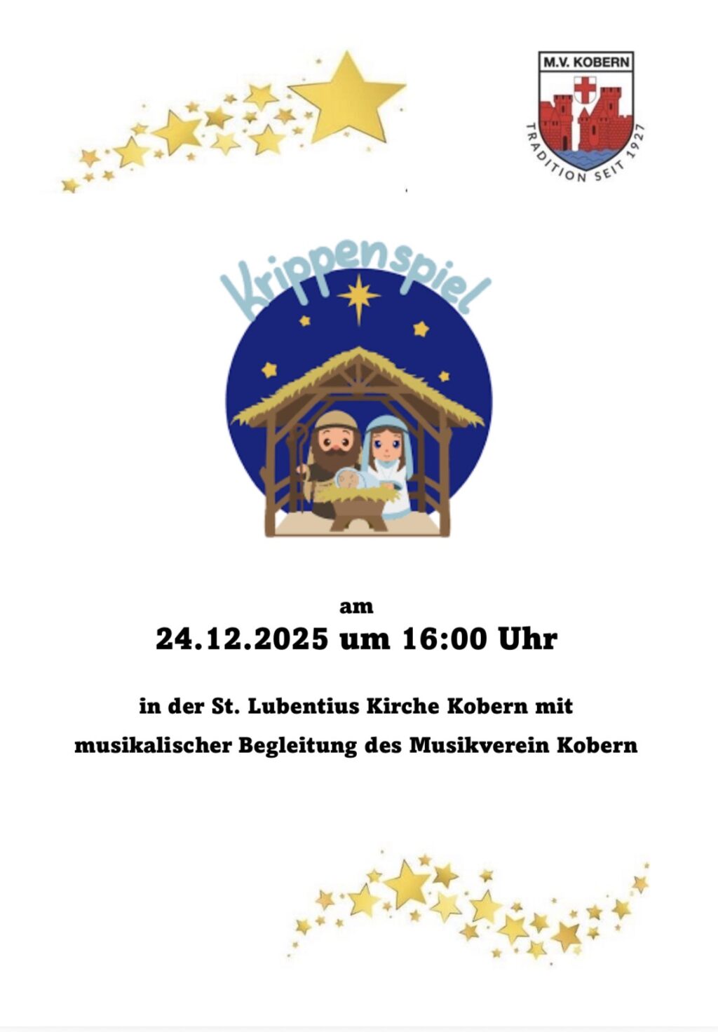 Weihnachten – Heiligabend mit dem Musikverein Kobern e.V. 24.12.2025, 16:00 Uhr Krippenspiel in der St. Lubentius Kirche in Kobern-Gondorf 24.12.2025, 18:00 Uhr Christmette in Kobern-Gondorf …